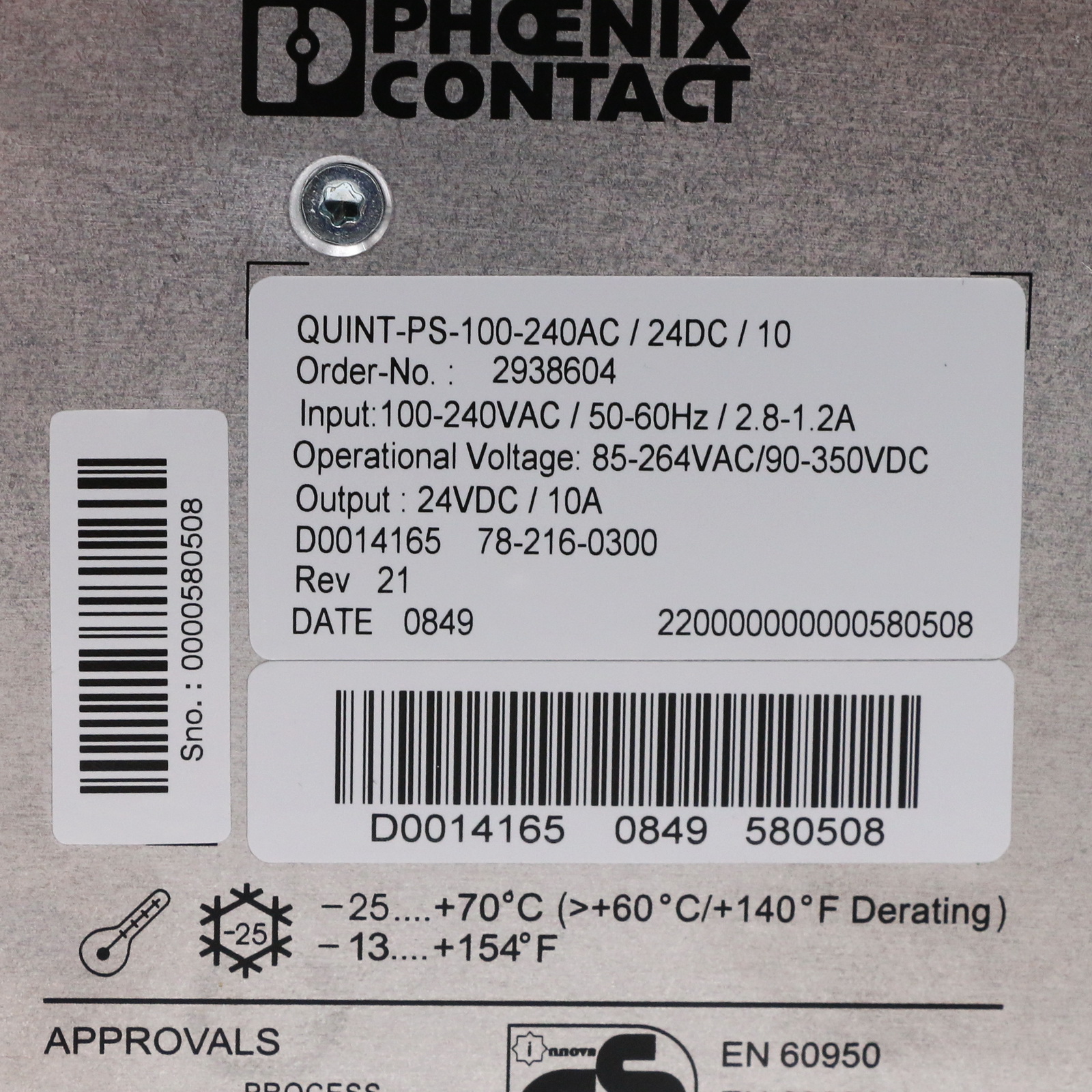 Phoenix Contact 2938604 QUINT-PS-100-240AC/24DC/10