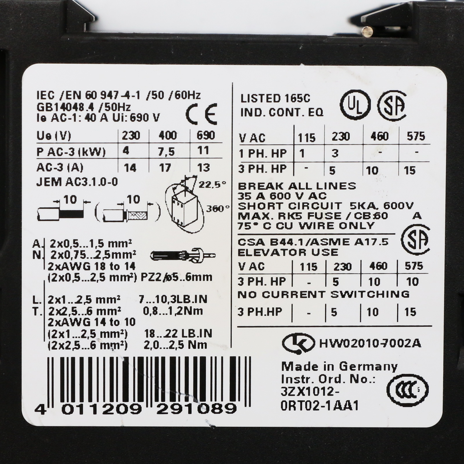 Siemens 3RT1025-1B..0 Stycznik mocy z 3RH1921-1FA22