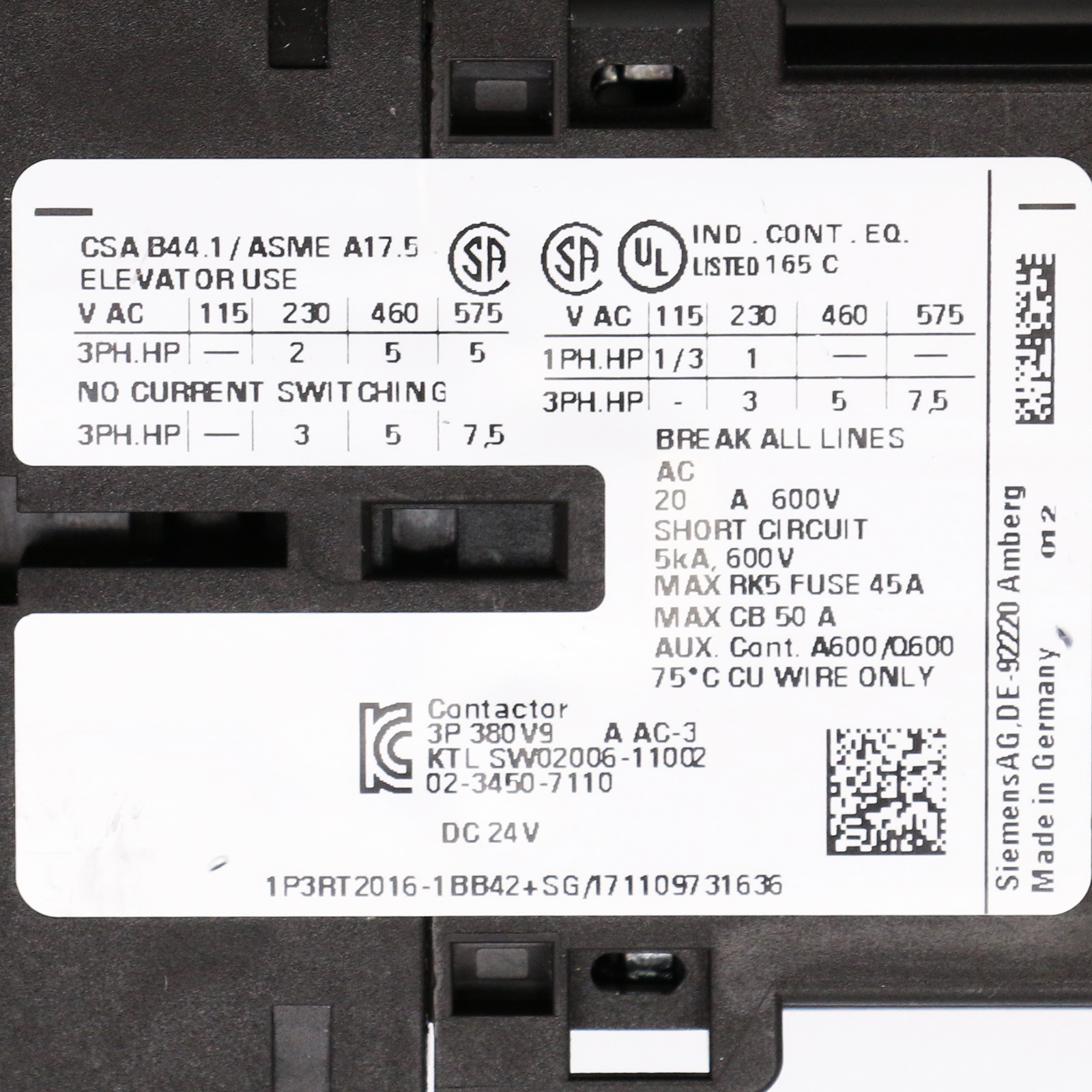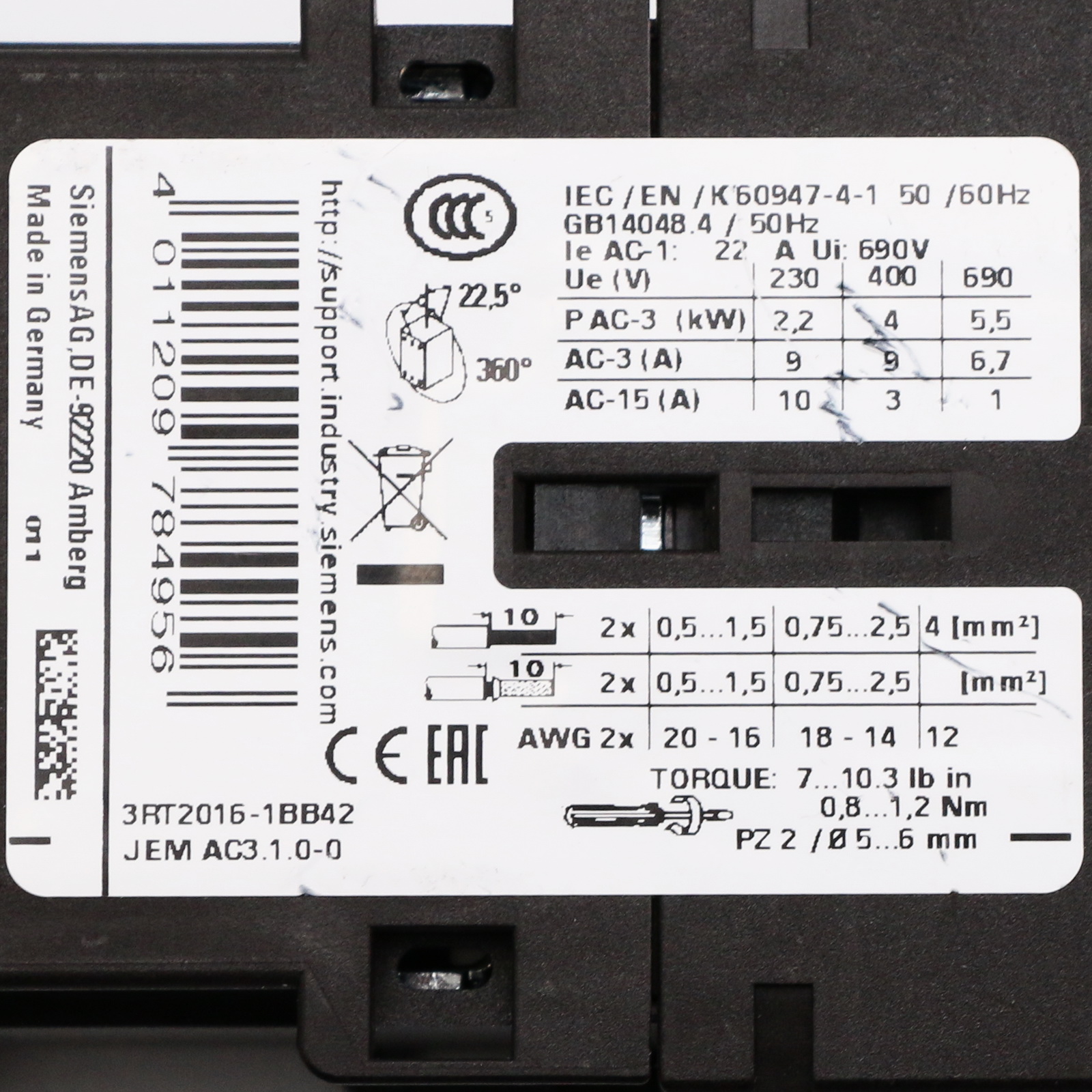 Siemens 3RT2016-1BB42 + 3RT2916-1LM00 Stycznik zasilania