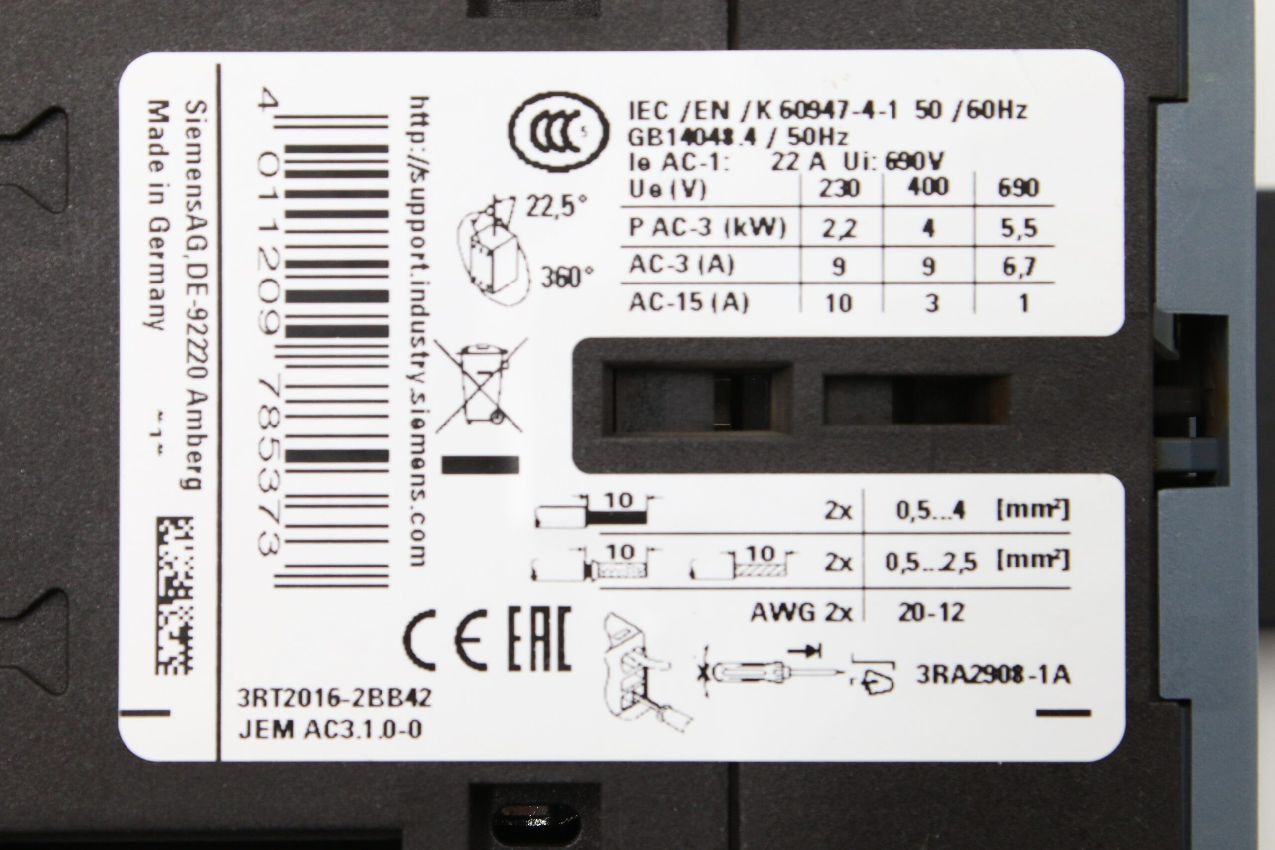 Siemens 3RT2016-2BB42 Stycznik zasilania z 3RT2916-1JK00