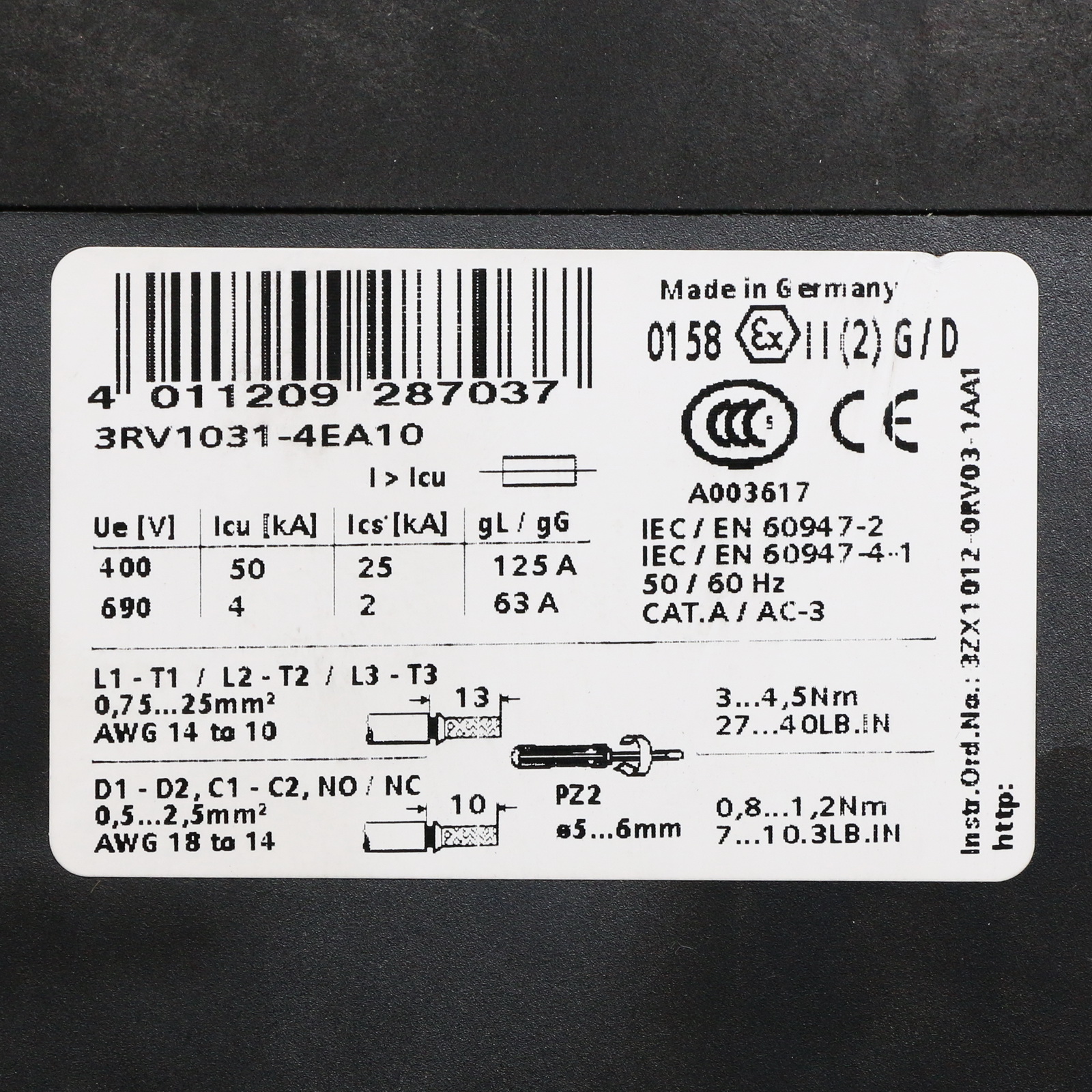 Siemens 3RV1031-4EA10 Wyłącznik automatyczny