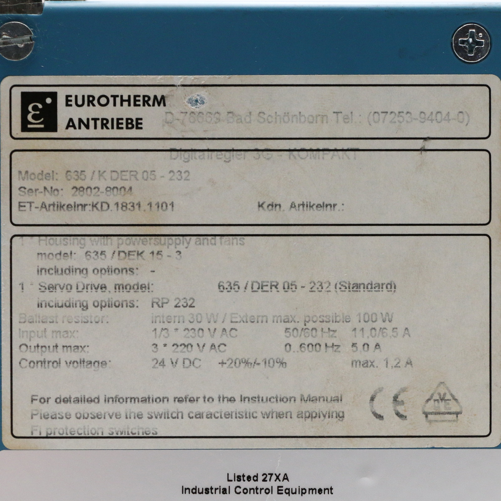 Eurotherm 635/K DER 05- 232 Kompaktowy kontroler cyfrowy 3G-KOMPAKT |DEK 15-3 | KD.1831.1101