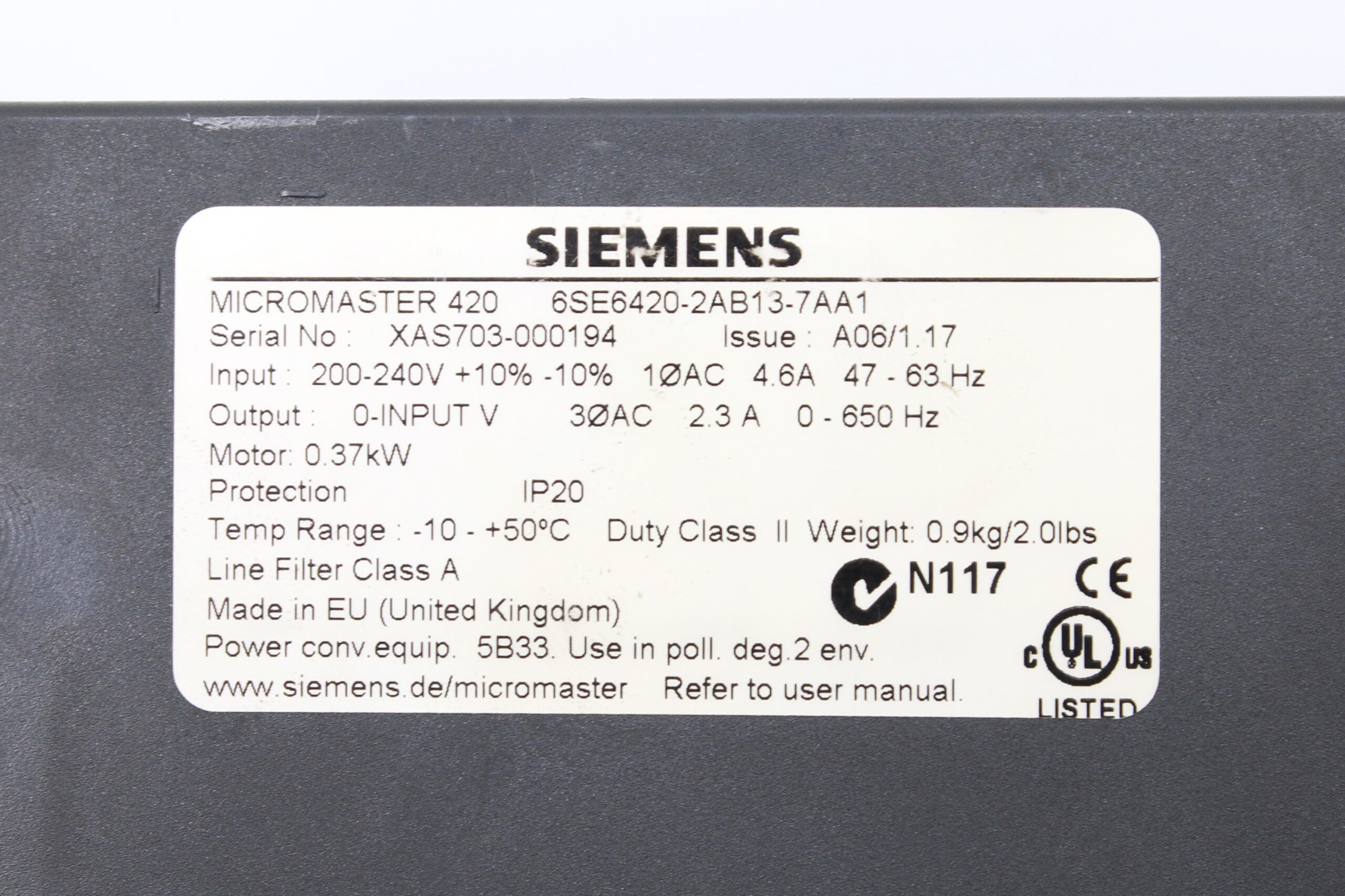 Siemens 6SE6420-2AB13-7AA1 MICROMASTER 420 + 6SE6400-0BP00-0AA0