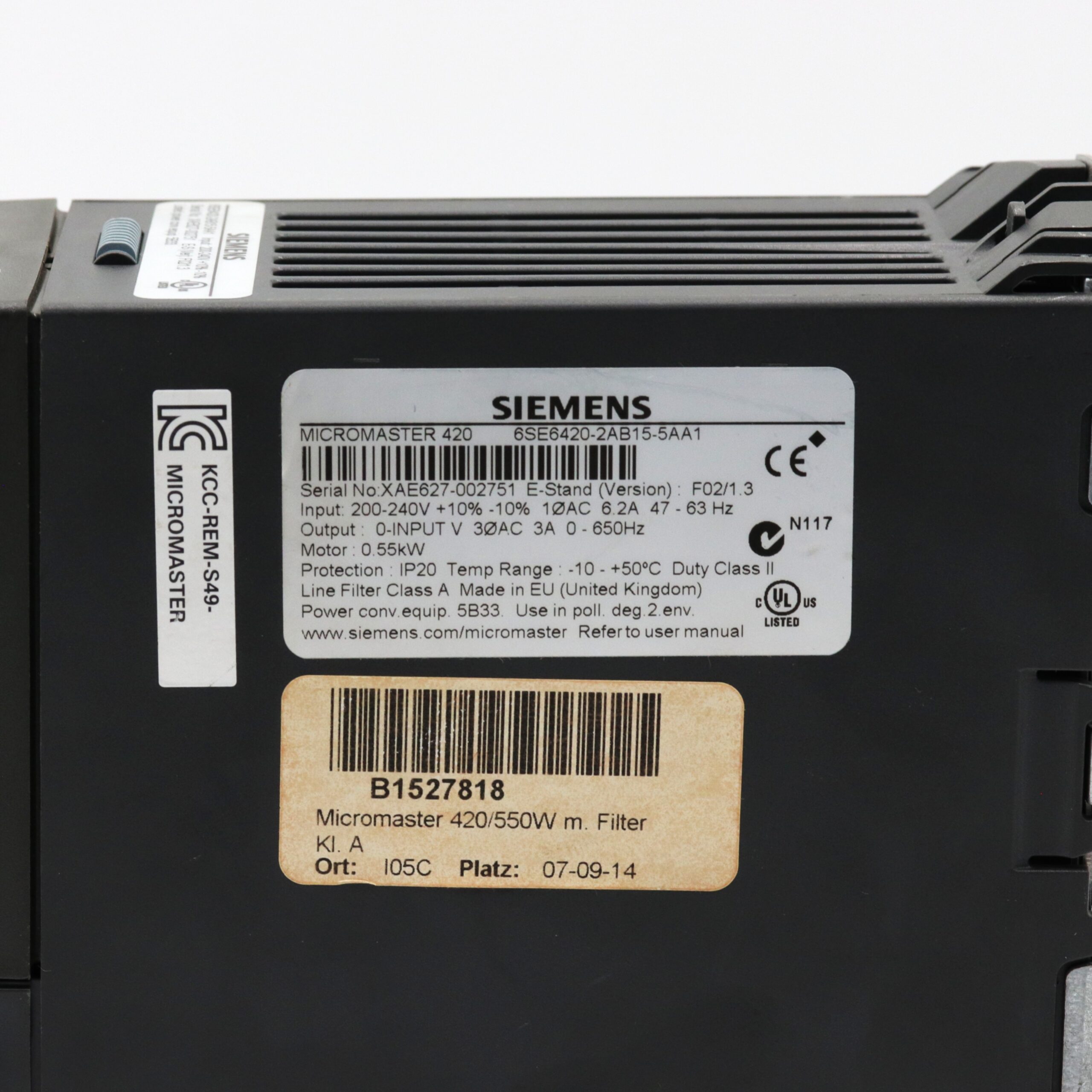 Siemens 6SE6420-2AB15-5AA1 MICROMASTER 420 + 6SE6400-0BP00-0AA0