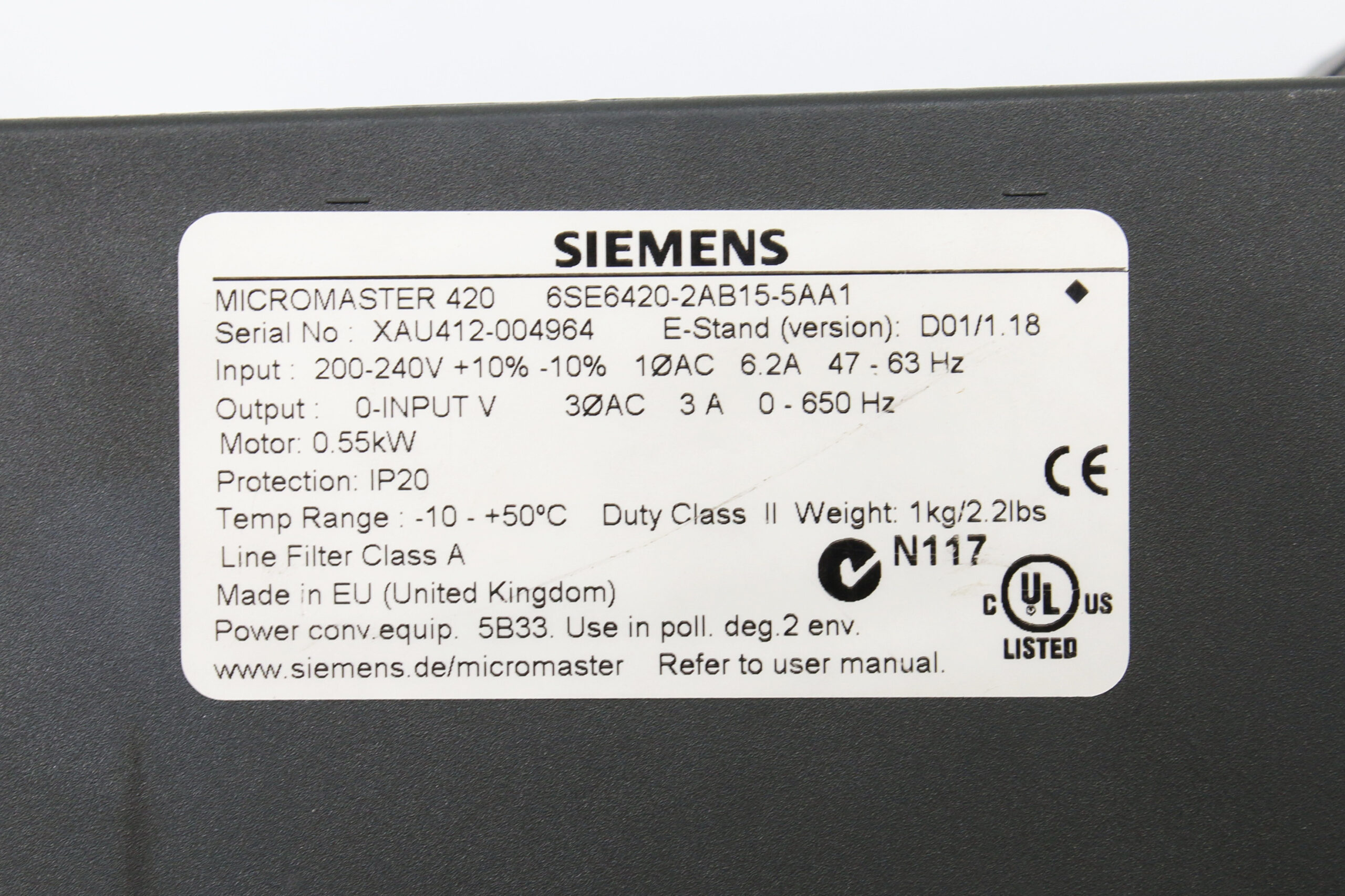 Siemens 6SE6420-2AB15-5AA1 MICROMASTER 420