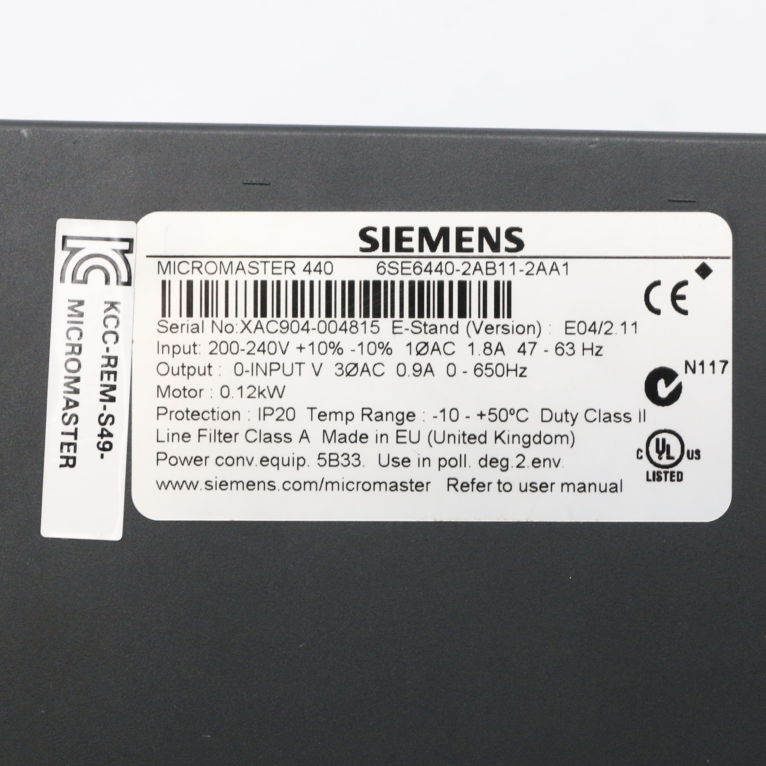 Siemens 6SE6440-2AB11-2AA1 MICROMASTER 440, E04/2.11 m. 6SE6400-0AP00-0AA0
