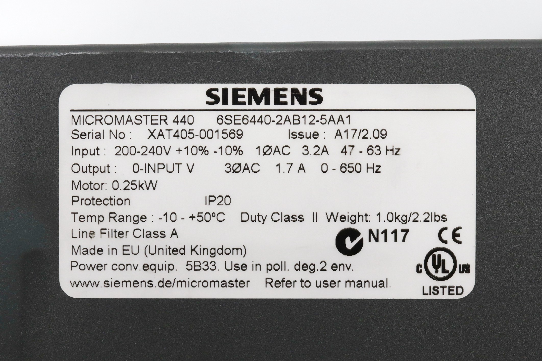 Siemens 6SE6440-2AB12-5AA1 MICROMASTER 440