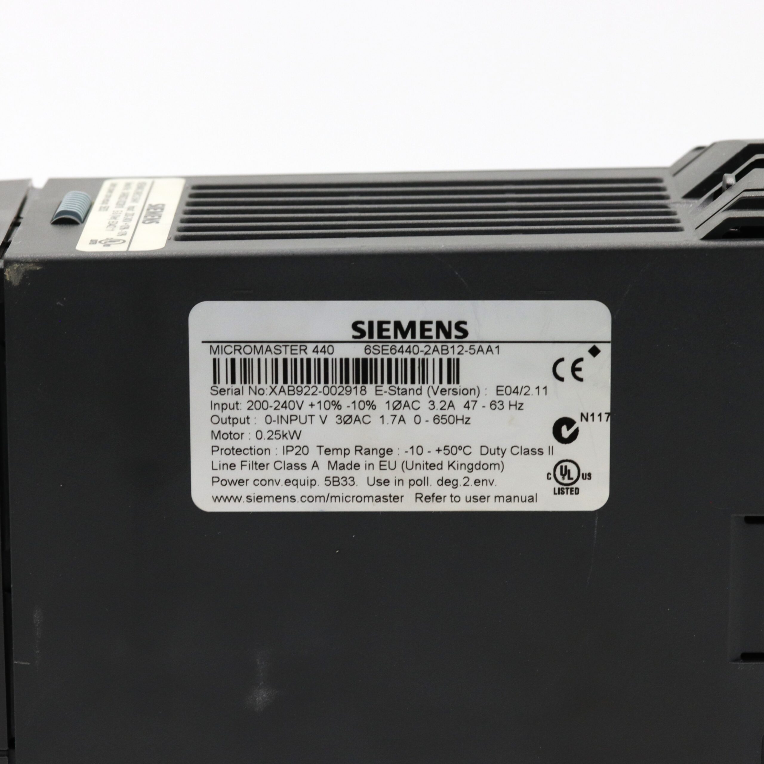 Siemens 6SE6440-2AB12-5AA1 MICROMASTER 440 + 6SE6400-0BP00-0AA0 +6SE6400-3CC00-4AB3