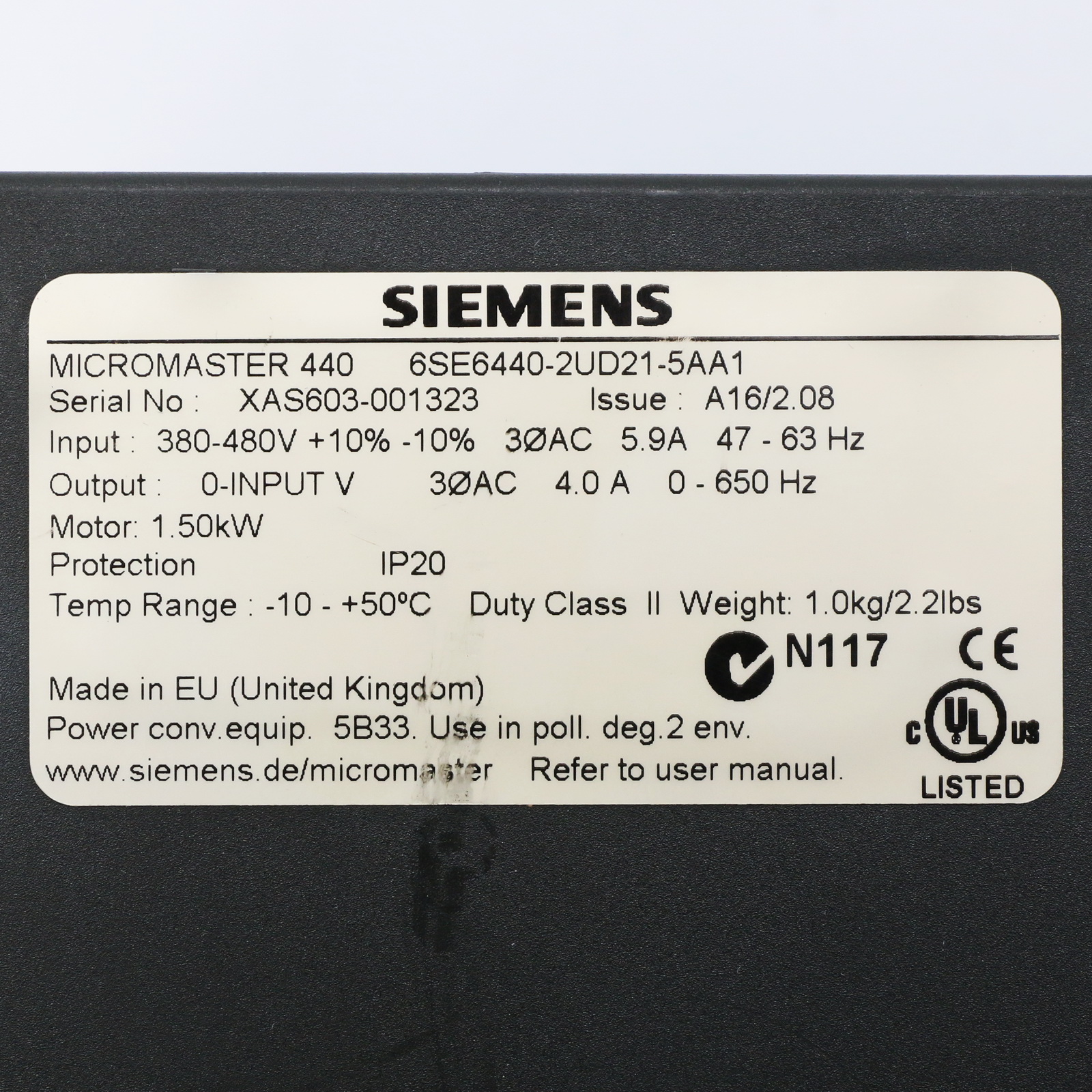 Siemens 6SE6440-2UD21-5AA1 MICROMASTER 440 + 6SE6400-0BP00-0AA0
