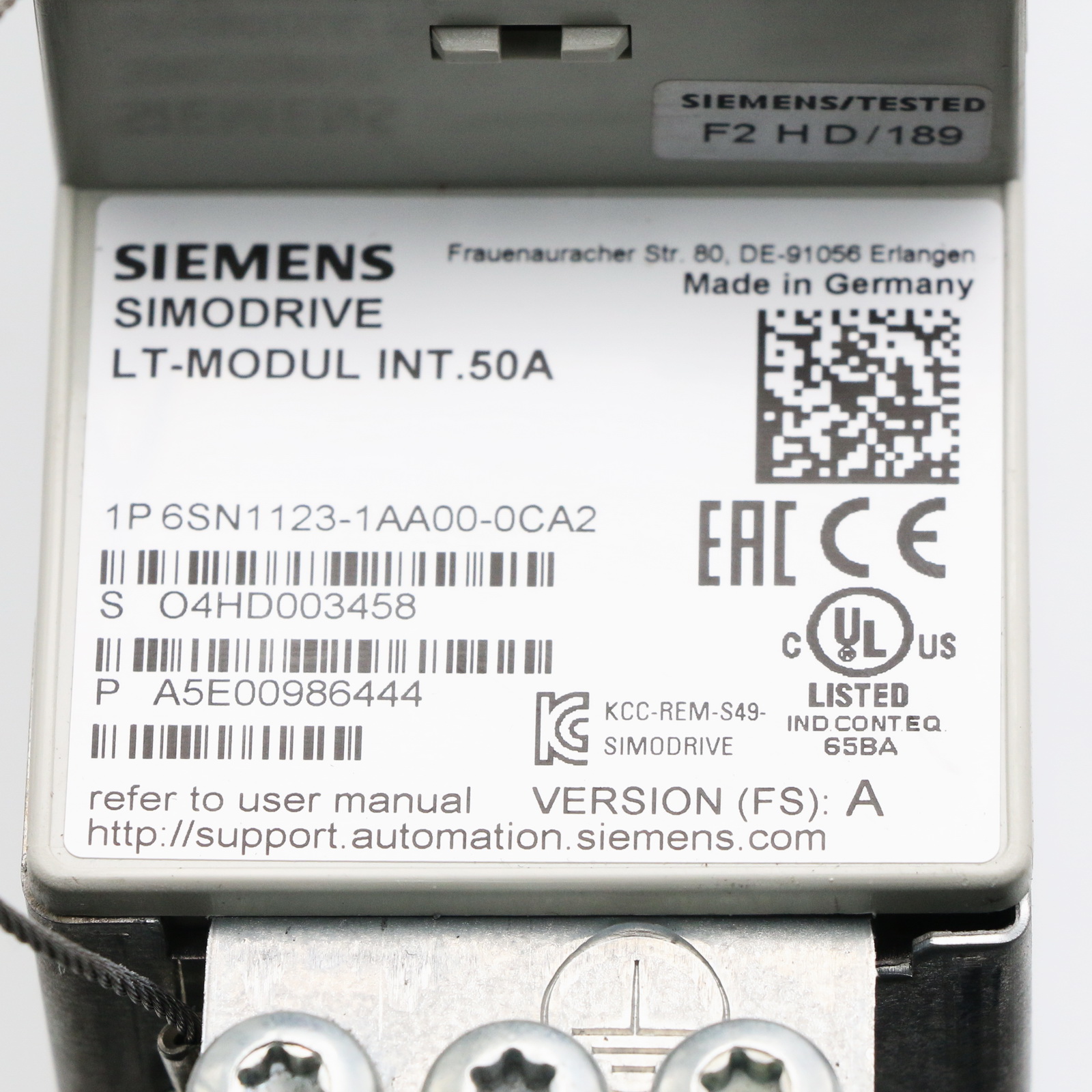 Siemens 6SN1123-1AA00-0CA2 Vers.: A + 6SN1118-0NJ01-0AA2 Vers.: B