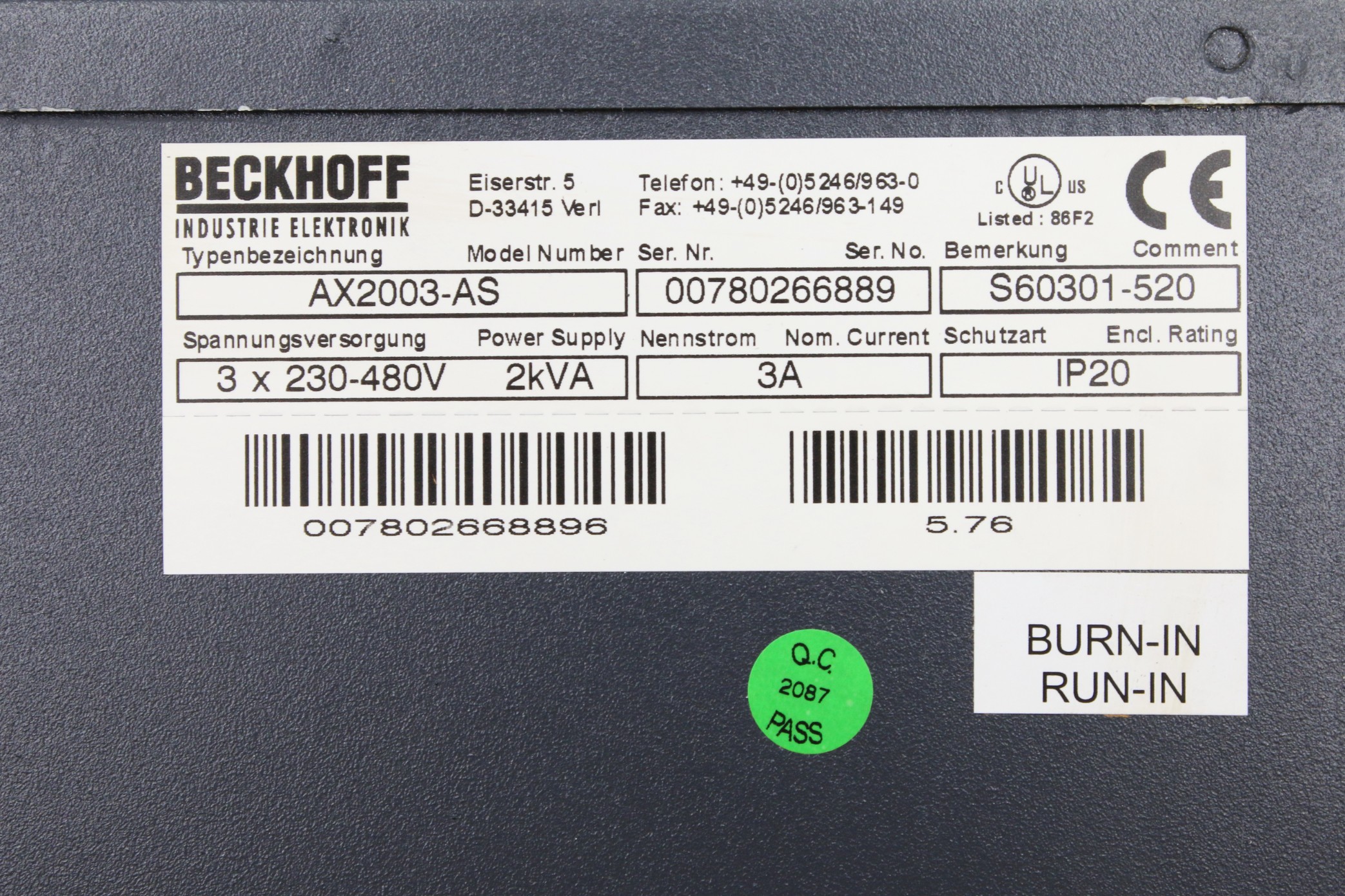 Beckhoff AX2003-AS S60301-520 Serwonapęd