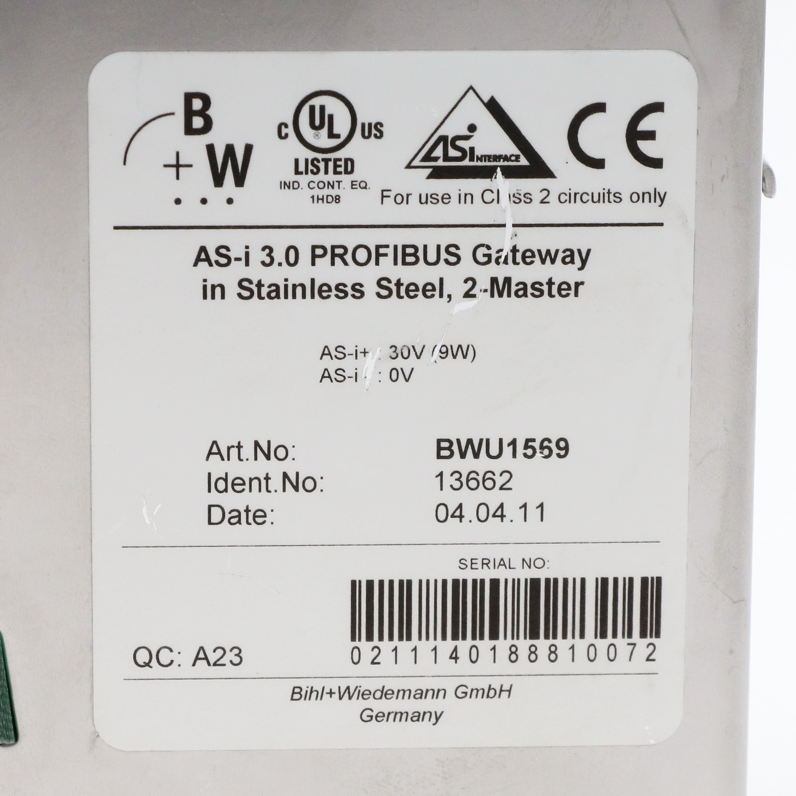 Napisz pierwszą opinię o „Bihl+Wiedemann BWU1569 AS-i 3.0 PROFIBUS Gateway ze stali nierdzewnej, 2 Master”
