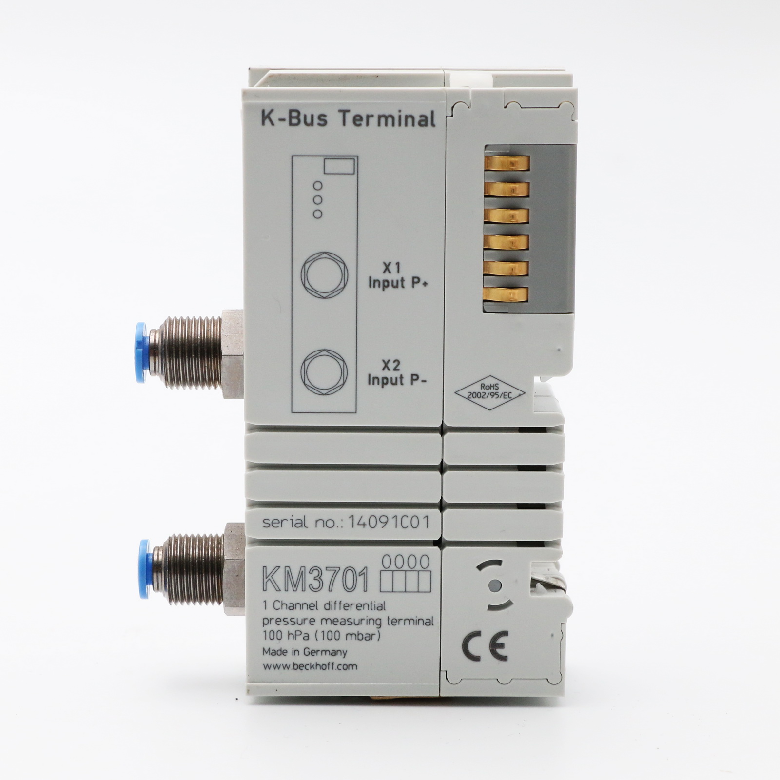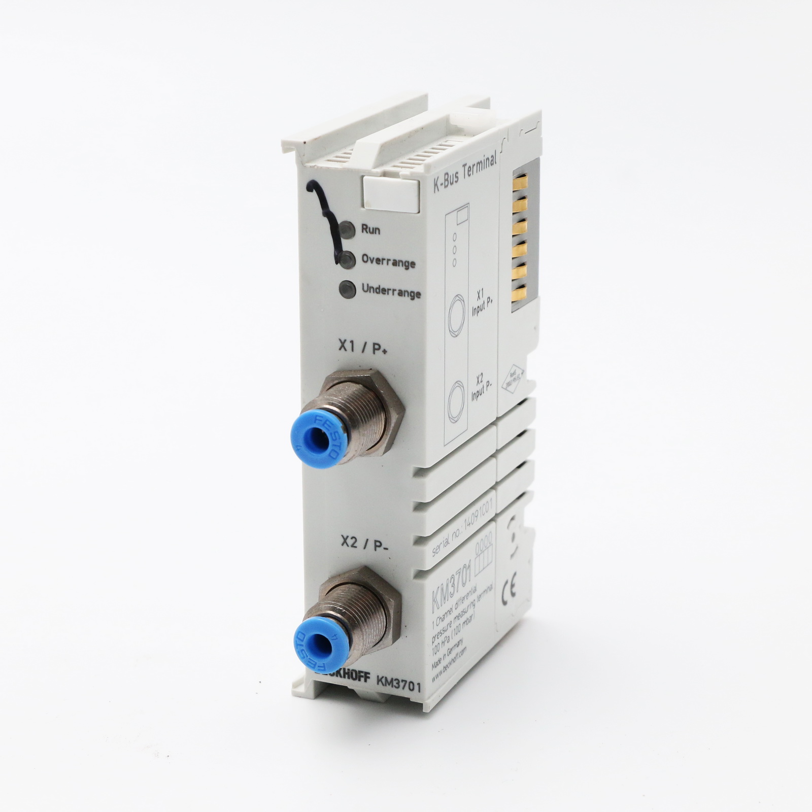 Beckhoff KM3701 | Moduł terminala magistrali, 1-kanałowe wejście analogowe, ciśnienie różnicowe, ±100 hPa (±100 mbar)