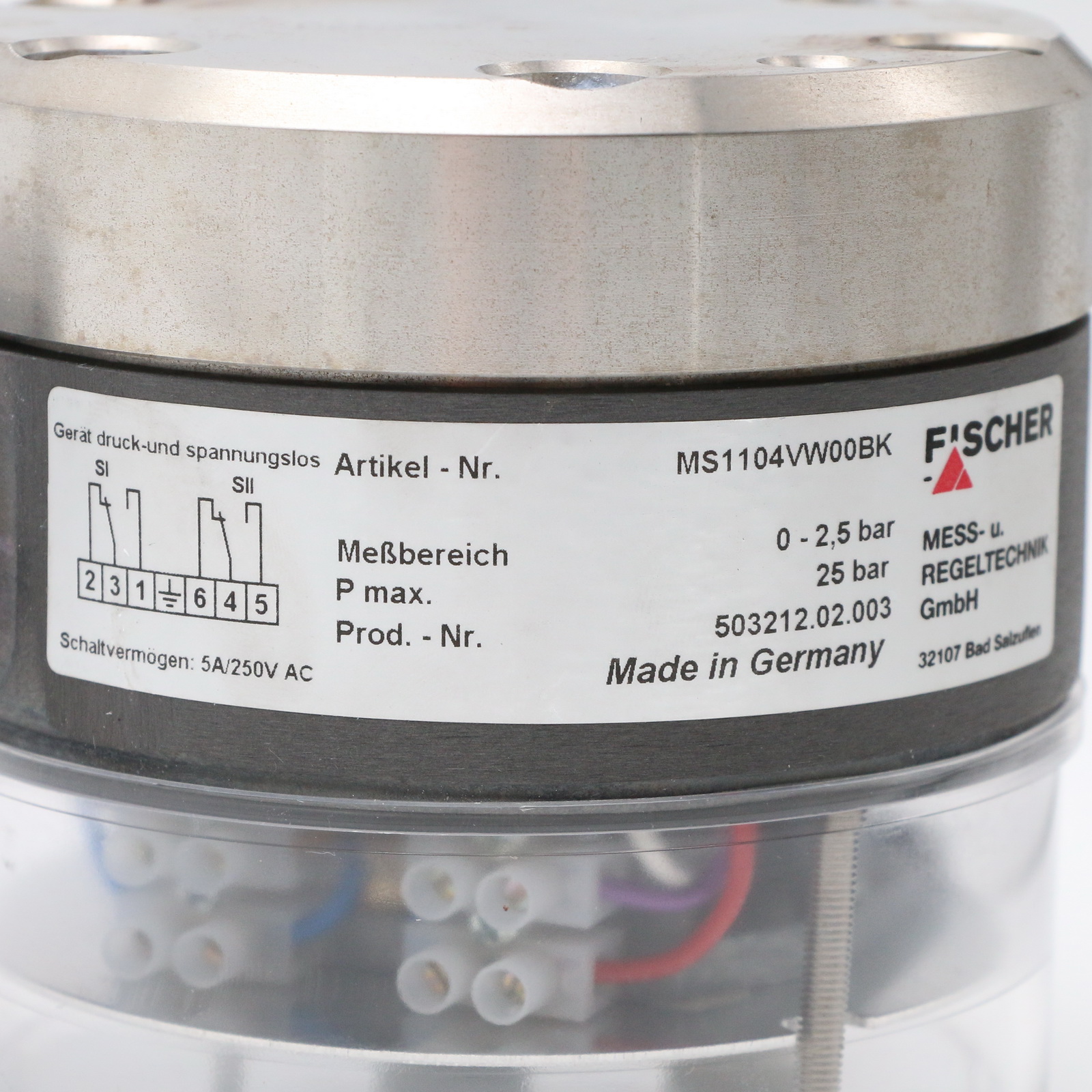 Fischer Mess- und Regeltechnik MS11 Manometr kontaktowy Zakres pomiarowy 0-2,5 bar MS1104VW00BK