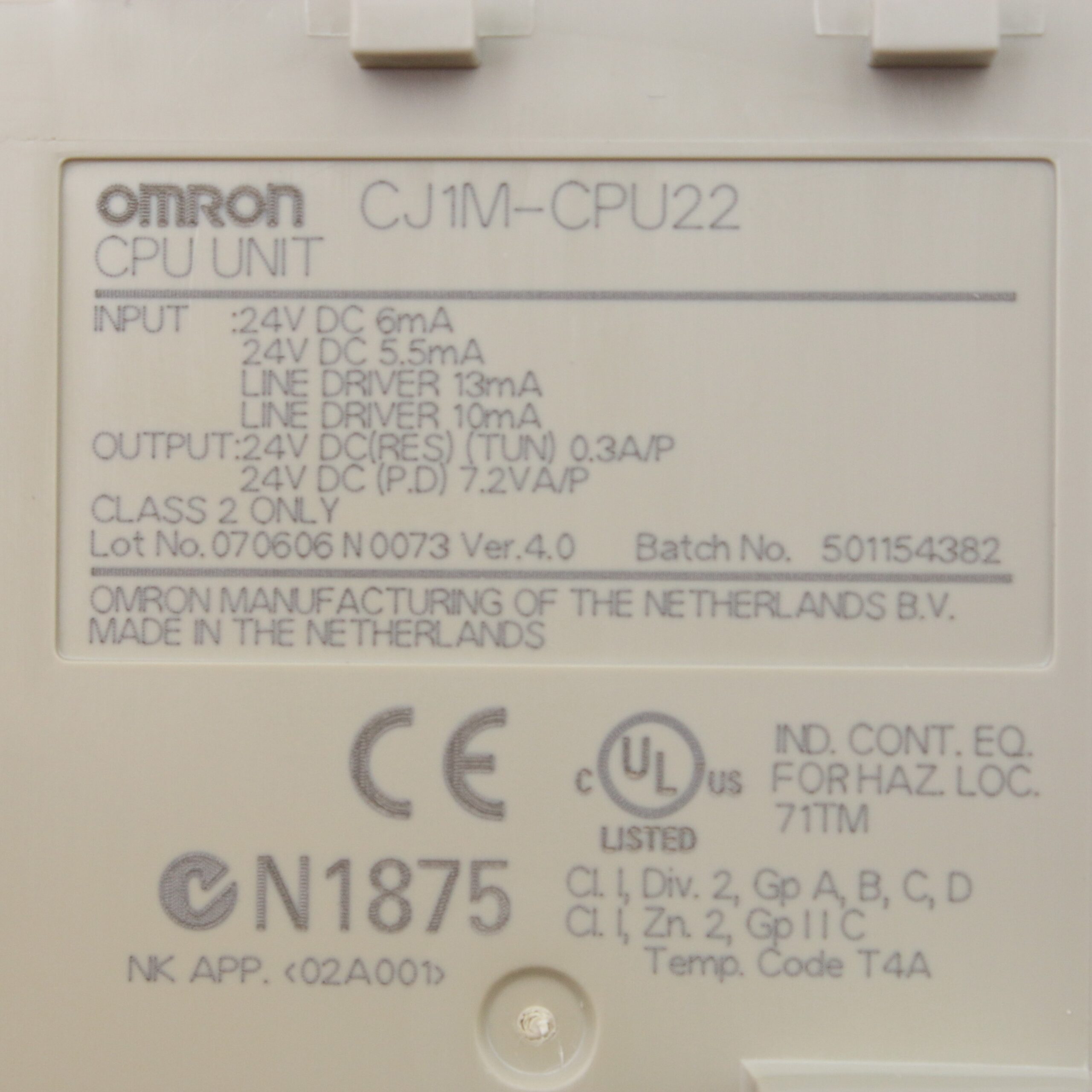 Omron SYSMAC CJ1M CPU22
