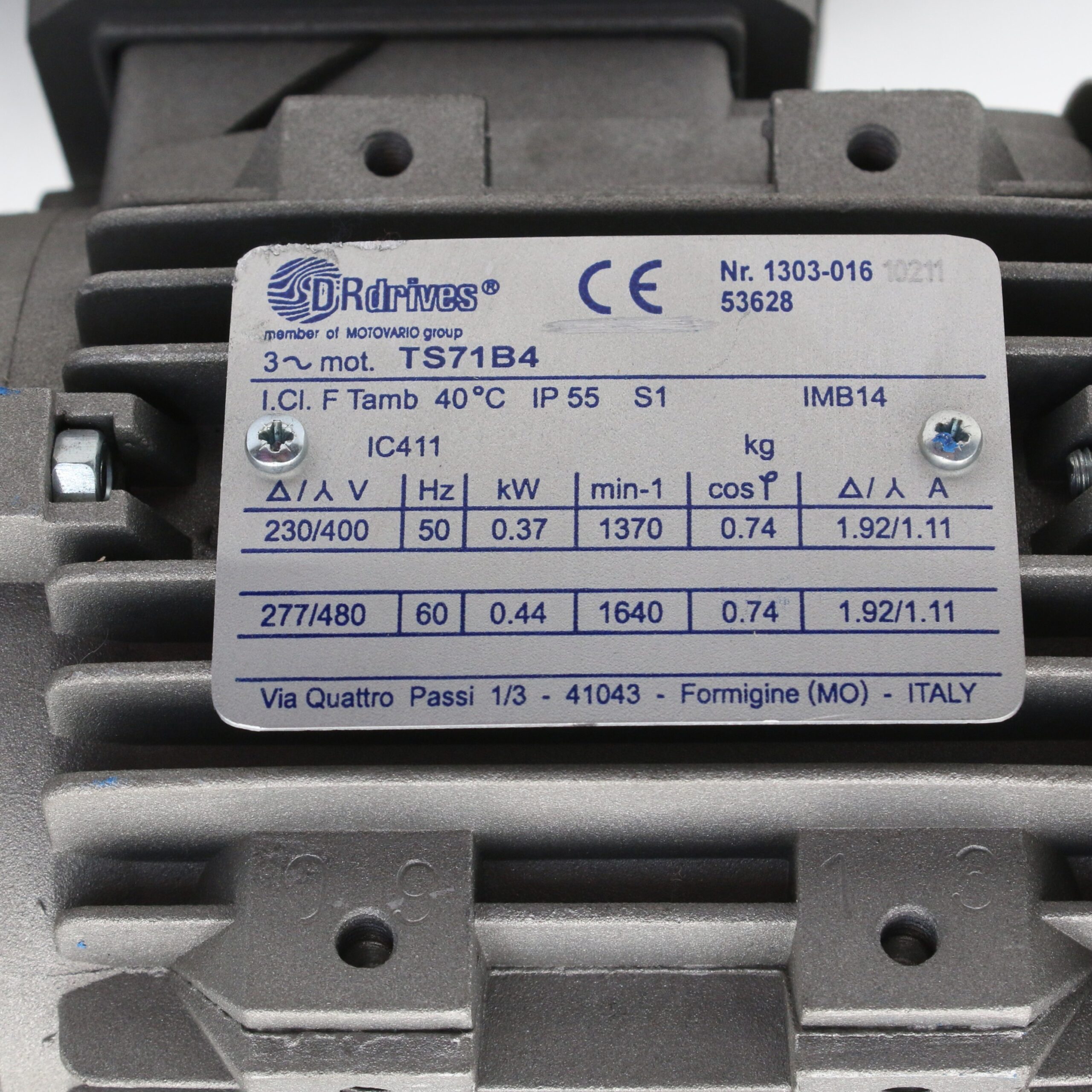 DR Drives TS71B4 Silnik | 0,37 kW + Motovario HA42 Przekładnia | i=48,75 | = 25 mm